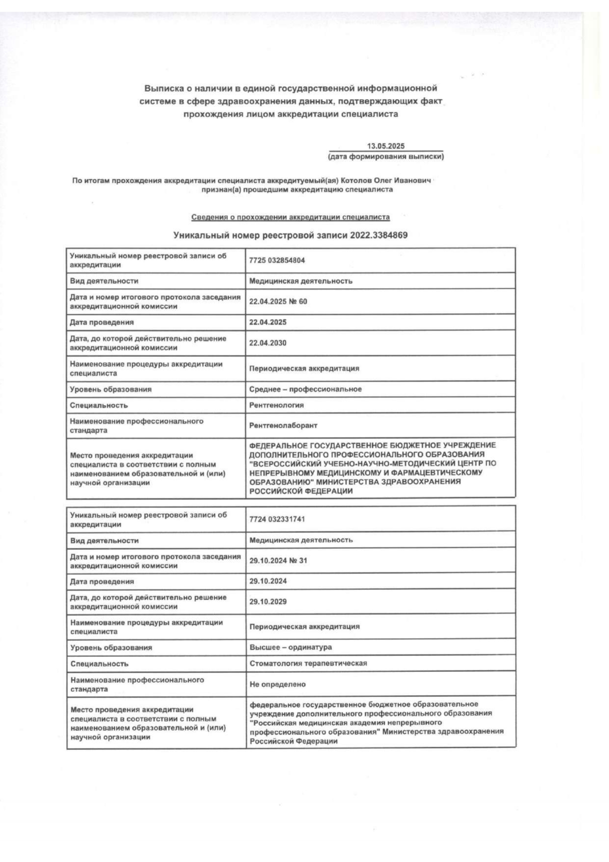 Ф.И.О. МЕДИЦИНСКОГО РАБОТНИКА:Котолов Олег Иванович